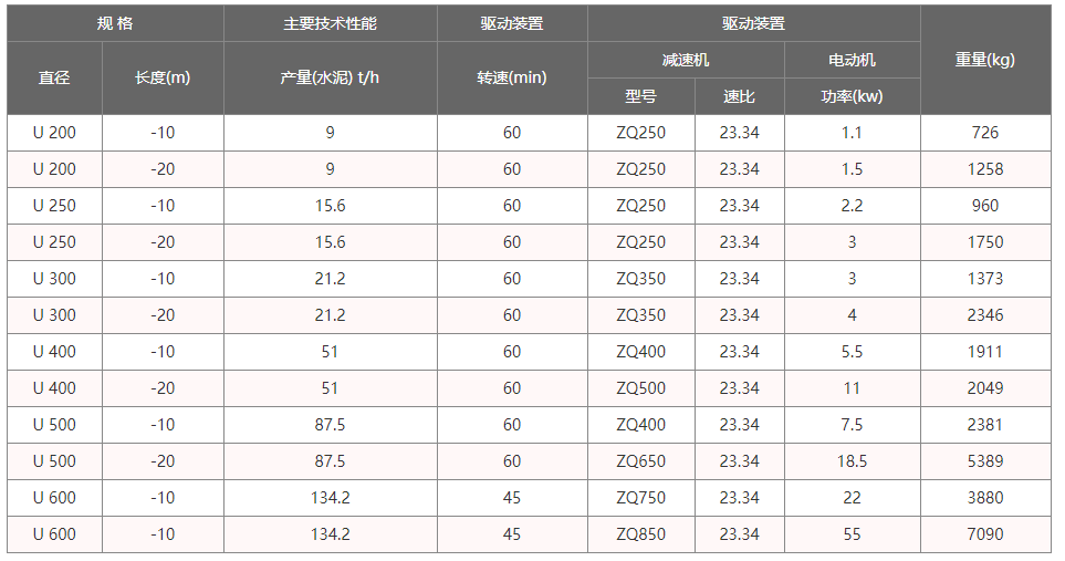 管式螺旋輸送機適用于水平或傾斜輸送粉狀、粒狀和小塊狀物料,如煤、灰、渣、水泥、糧食等,物料溫度小于200℃,不適宜輸送易變質的、黏性大的、易結塊的物料。參數如下: