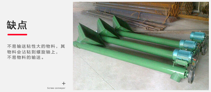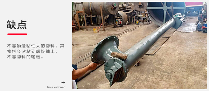 缺點:不易輸送粘性大的物料,其物料會沾粘到螺旋軸上,不易物料的輸送。