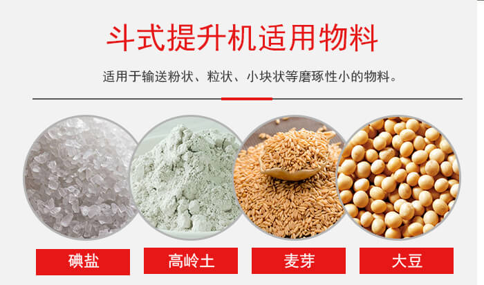 斗式提升機適用于輸送粉狀、粒狀、小塊狀等磨琢性小的物料;重力式卸料的斗速較慢,適用于輸送塊狀的,比重較大的,磨琢性大的物料,如石灰石、熟料等
