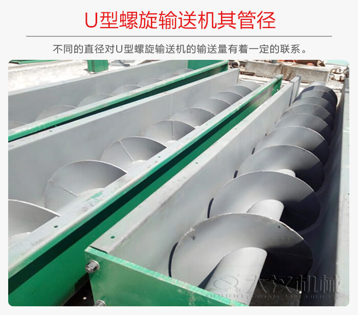 U型螺旋輸送機(jī)的管徑,大致有:150,200,250,--600毫米不等,其不同的直徑對(duì)U型螺旋輸送機(jī)的輸送量有著一定的關(guān)系,所以大家在選擇時(shí)要盡量考慮到這幾點(diǎn)。