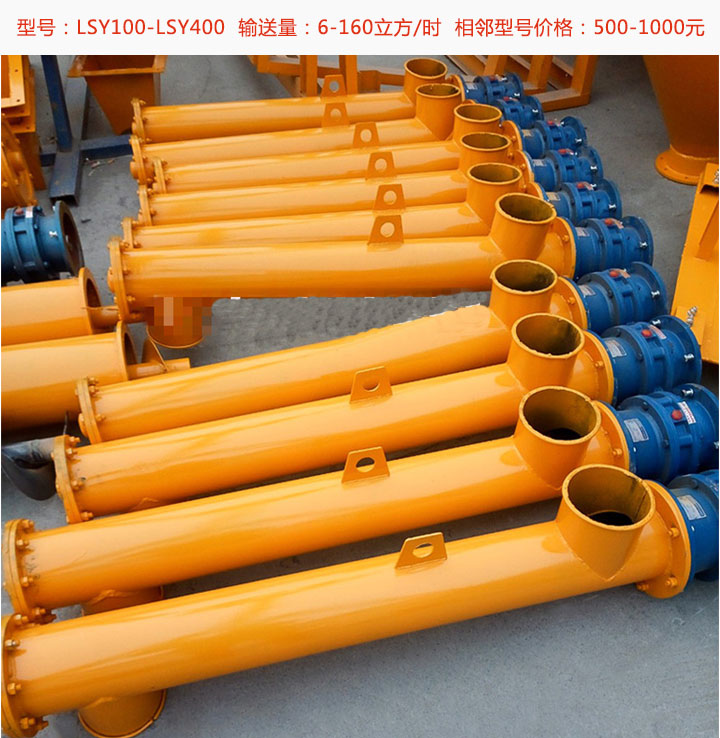 水泥螺旋輸送機常用型號有LSY100,LSY120,LSY140,LSY160,LSY200,LSY250,LSY300,LSY350,LSY400等9種對應(yīng)的,輸送量為6-160立方/小時,可根據(jù)需要的輸送量選擇對應(yīng)的型號,型號不同對應(yīng)的價格也不同。
