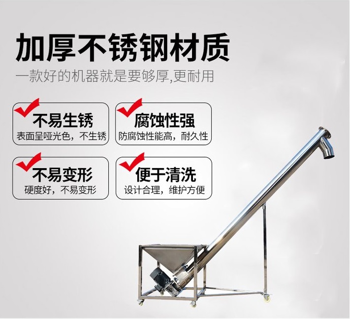不銹鋼螺旋輸送機(jī)采用304或316L不銹鋼制造,耐酸堿腐蝕,耐高溫,螺旋面經(jīng)處理不易生銹,保證原料不污染,無(wú)殘料在機(jī)器中,適用于必須嚴(yán)格避免輸送材料受到任何污染,要求清潔和完美耐腐蝕的應(yīng)用,如食品、化學(xué)品、醫(yī)藥以及任何其他需要衛(wèi)生、腐蝕或極端溫度的應(yīng)用。